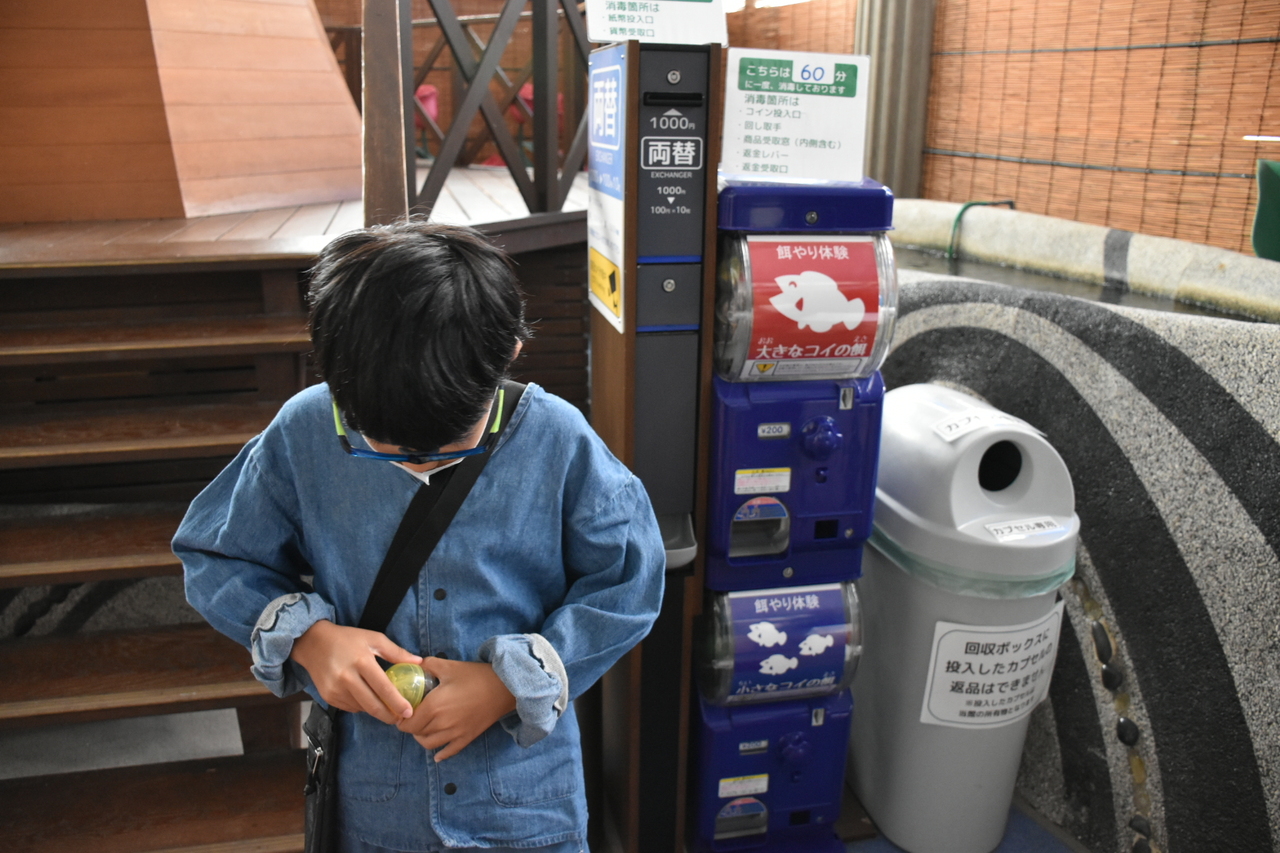 帰りにガチャガチャをして子供をお土産から目をそらしながら水族館を後にしました- 旅行時期
