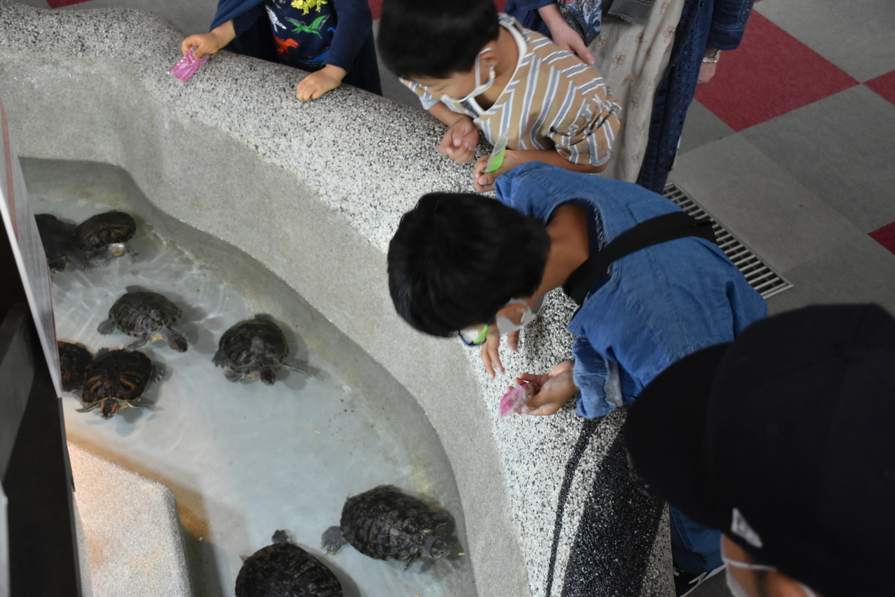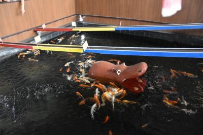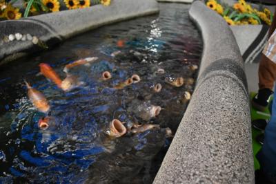 鯉の餌やりを楽しんで、亀の餌やりへ