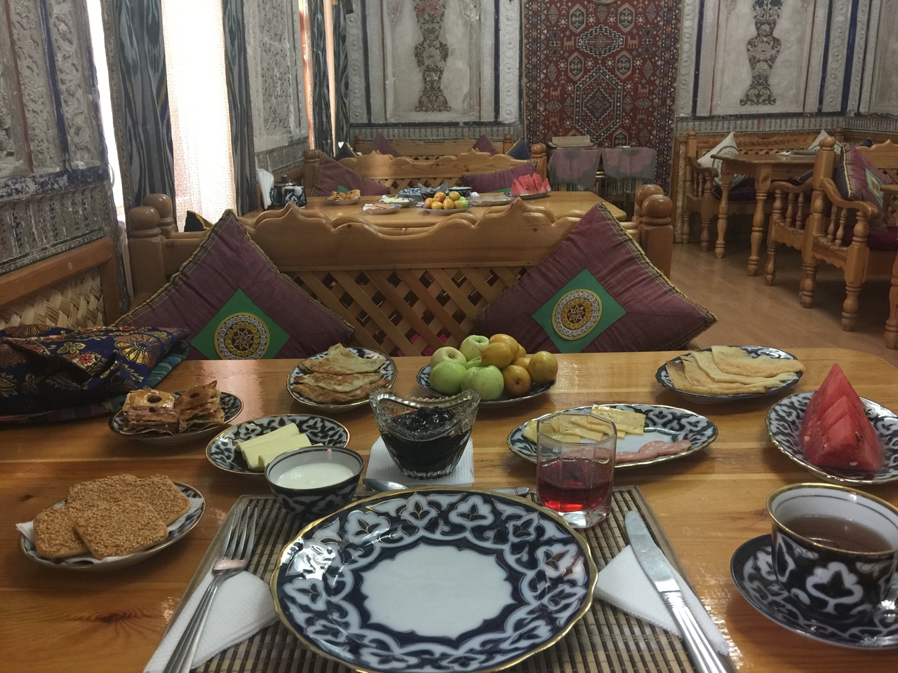 ウズベキスタンは水圧が弱いシャワーばかりですが、ここはホットシャワーも強い水圧で助かりました。こちらから聞かなくもマップでオススメ場所やレストラン等々説明してくれたのが親切です。