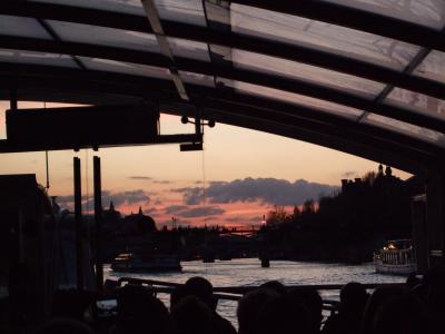 ツアーの始まりです。セーヌ川の船乗り場までバスで移動。おぉーエッフェル...