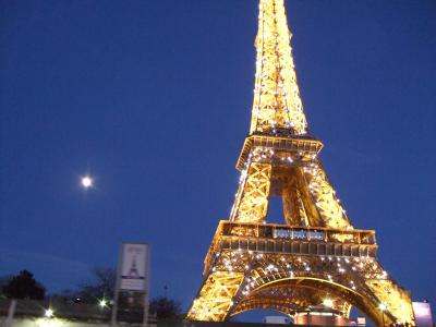 ライトアップされたエッフェル塔がー!横にはお月様。ステキでした。この後...