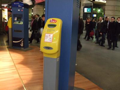 無事にTGVの乗り場へ到着。この黄色い機械にキップを入れて印字しないと...