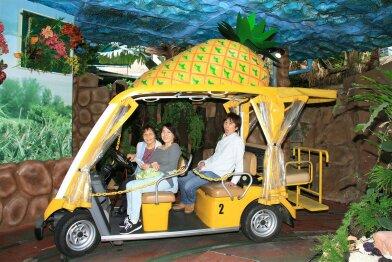 自動撮影の写真です。こーんなカートで園内の移動です。パイナップルがない...