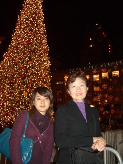 ユニオンスクエアのクリスマスツリー町中がクリスマスデコレーションでキラ...