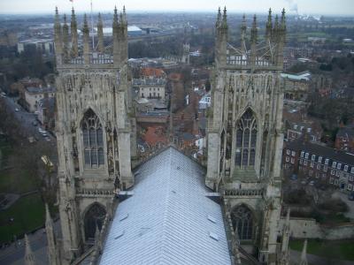 ヨークミンスター。塔の上からの眺め。高所恐怖症の私は、足がガクガク・・...