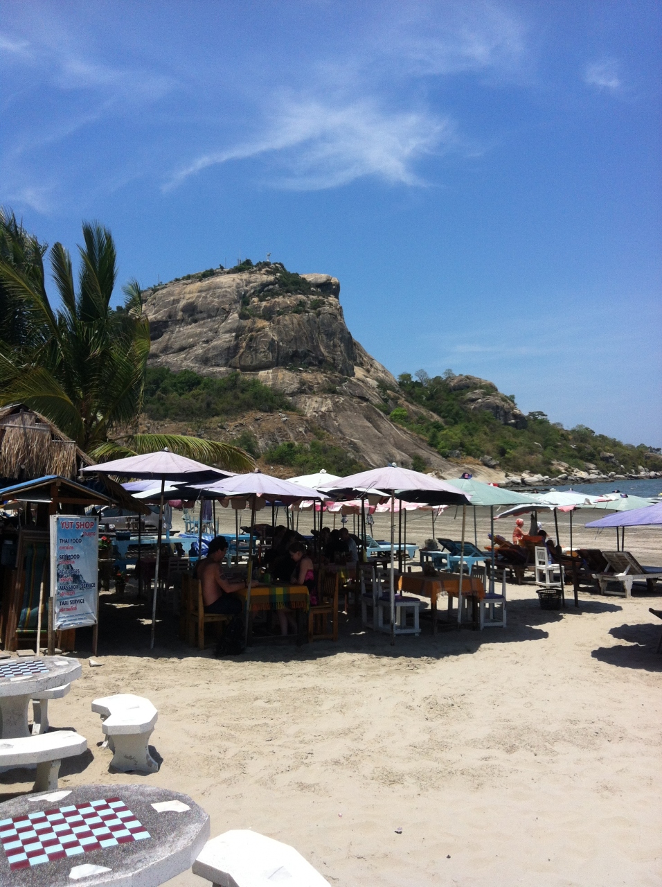 ホアヒンの隣町、カオタキアブにあります。ホアヒンだと思って予約すると街まで20分くらいかかります。タクシーもほとんどないので大変だと思います。しかし、ホテルは欧米系の人やタイ人が多くいます。ゆっくりできます。ホテルの隣には安いシーフードレストランがあります。安くて有名なのかお客さんが大勢います。しかも、美味しいい。