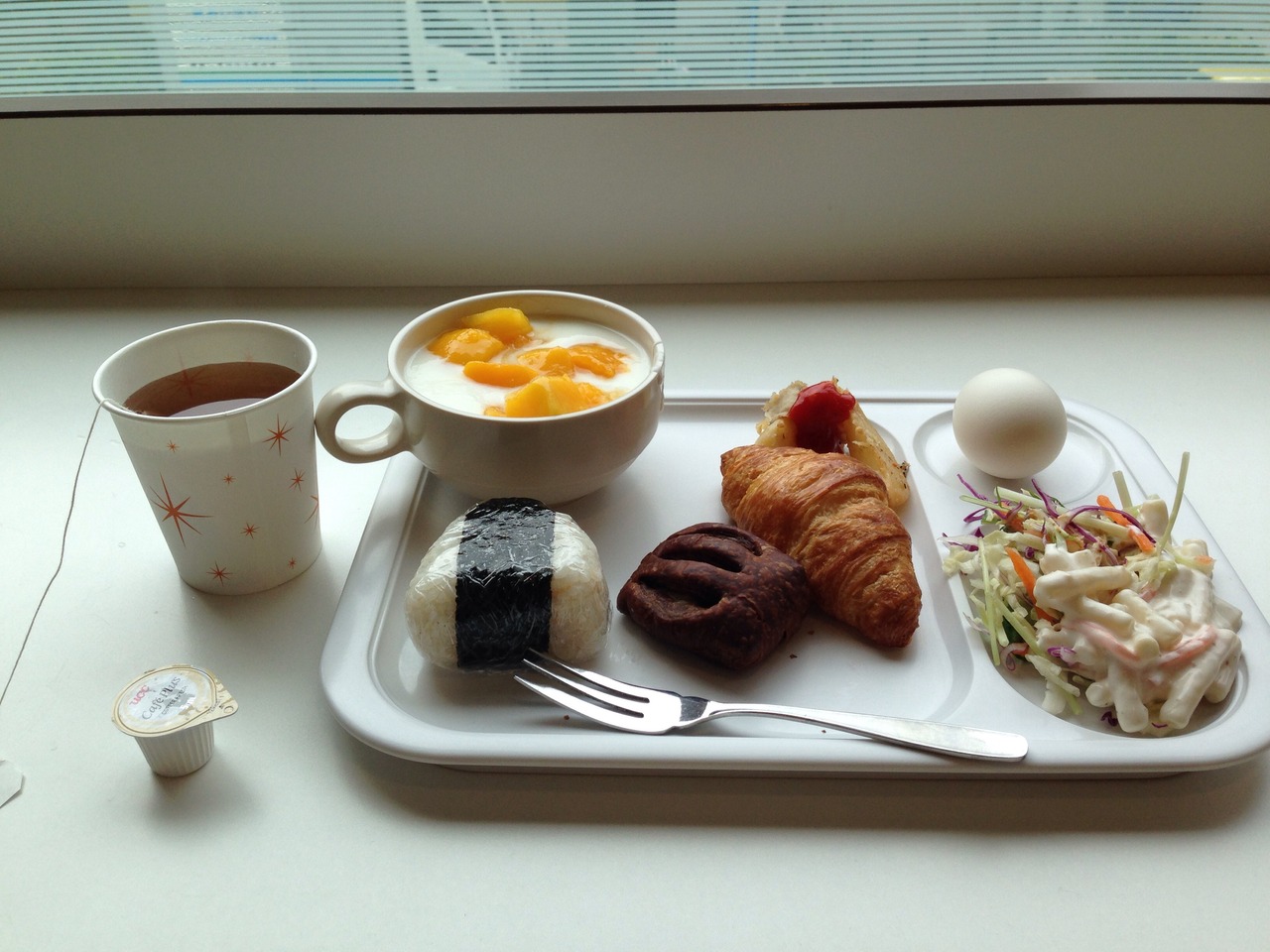小食のあたしにはちょうどな量の甘さ控えめのパン2コとコーヒーとオレンジジュース。