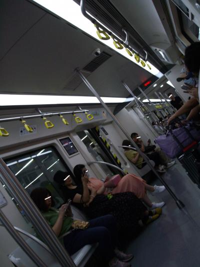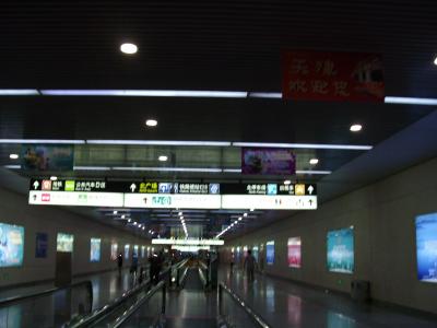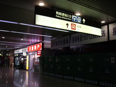 天津地下鉄駅へスーツケースを持って座り込んでいる人が大勢います