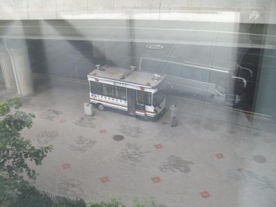 7:30 ホテルをチェックアウトしました警備員風の男性が立ってますね