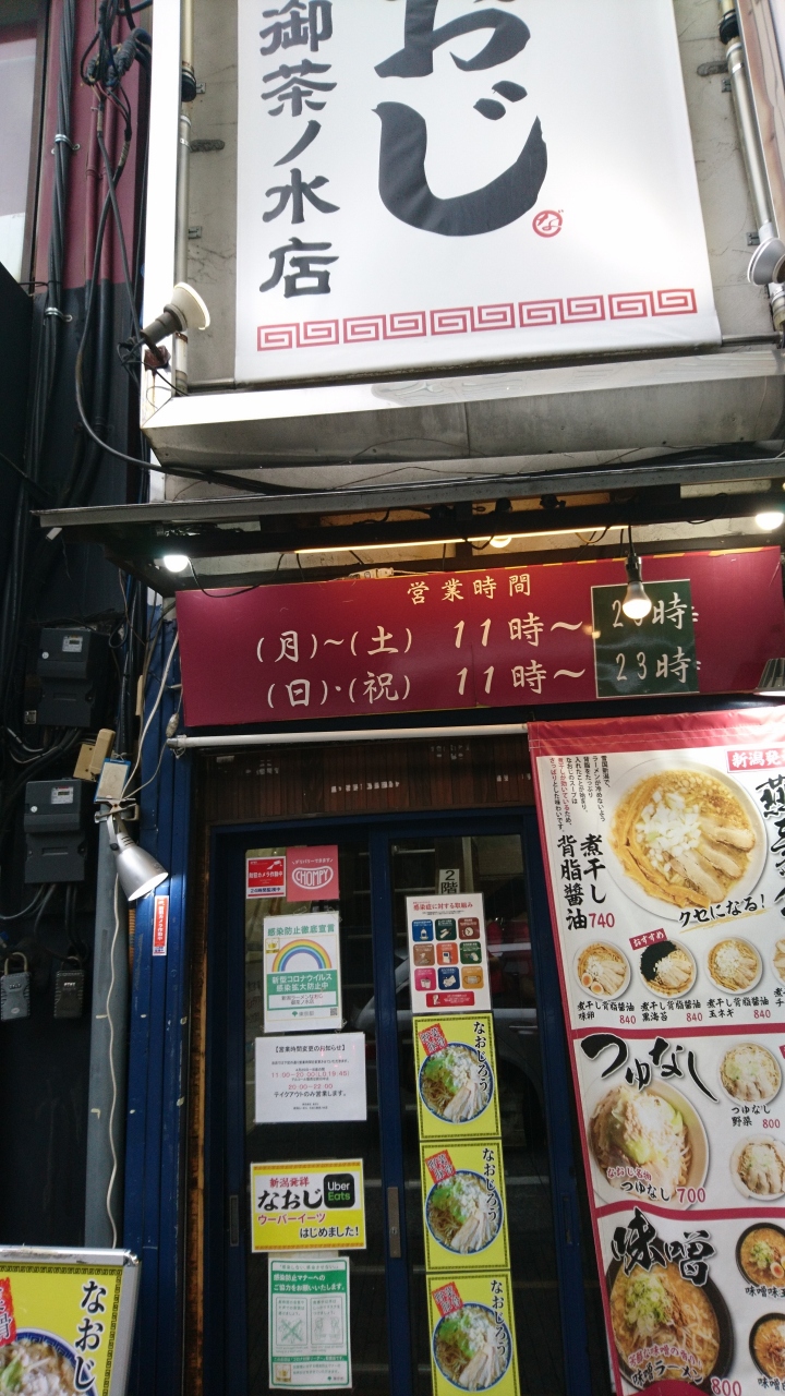 お茶の水駅周辺は学生が多いのでラーメンの激戦地である。間口の狭いラーメン店がしのぎを削っている。この店もそのひとつ。新潟らーめんとはめずらしいのでチャレンジした。ハッキリ言ってどうってことない味。ちょっと脂っぽさが強く私の好みではなかった。