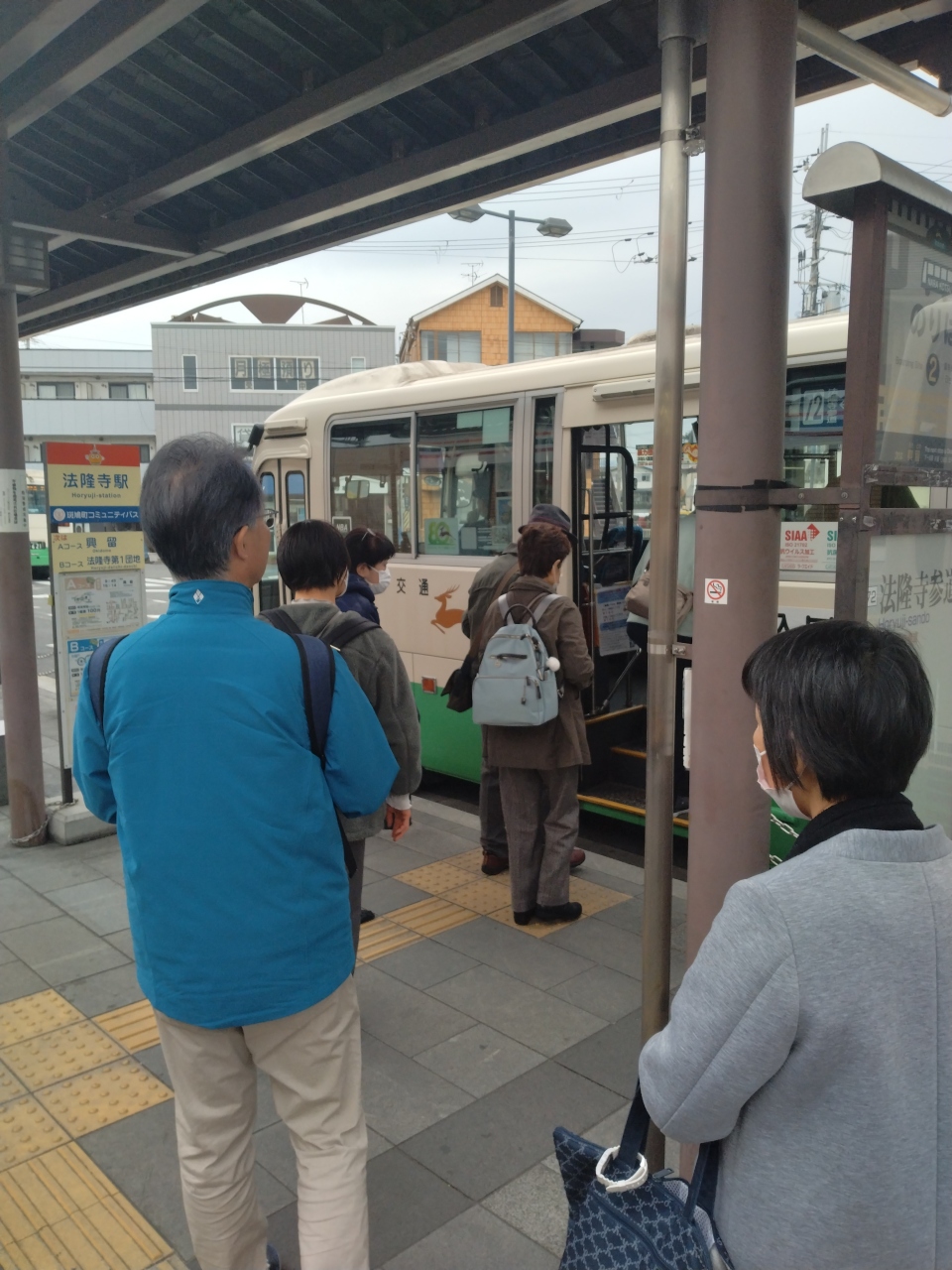 奈良の法隆寺に行く際に、JR法隆寺駅から法隆寺入口まで利用した公共交通機関である奈良県のバス会社。今回利用したこの路線は、途中の道路が道幅が狭く、小型のバスを使用していた。支払いには全国共通の交通系ICカードのSuicaが使えた。
