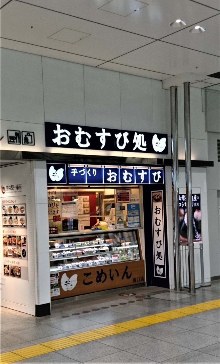 JR東京駅八重洲北口に改札を出たすぐ外にあるおむすび販売店。超便利な場所にあり、忙しい時の空腹対策に便利な存在。さすがおむすび専門店なので、コンビニよりもはるかにバラティーで品質もよい。その分お値段は張るがその価値はある。