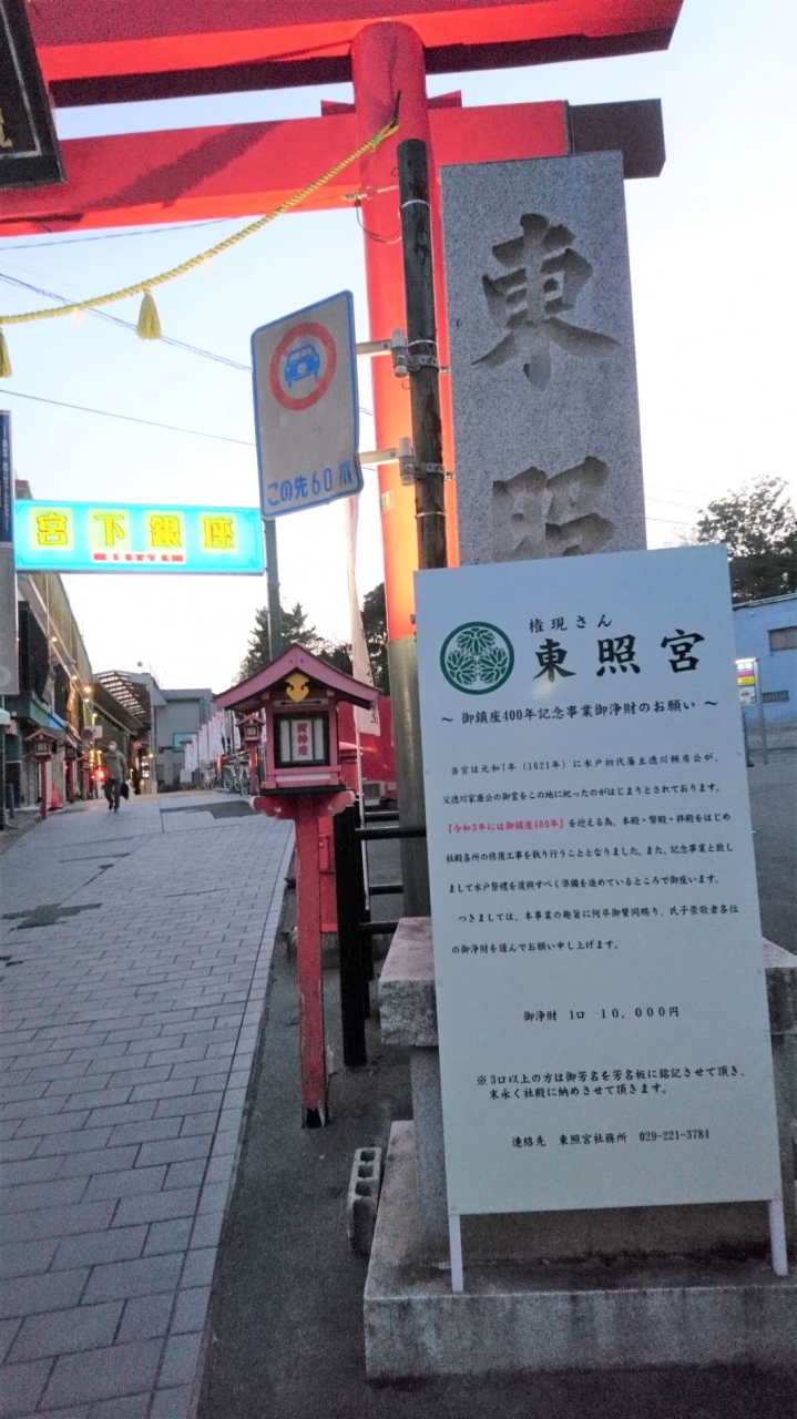 水戸駅から京成百貨店に向かって歩いていくと、途中にこの東照宮の看板があった。東照宮は日光のものと思っていたら、水戸にもあることはこの時初めて知った東照宮とは東照大権現の神号を得た徳川家康をまつる神社で全国各地に所在しているのもこのことで知った。