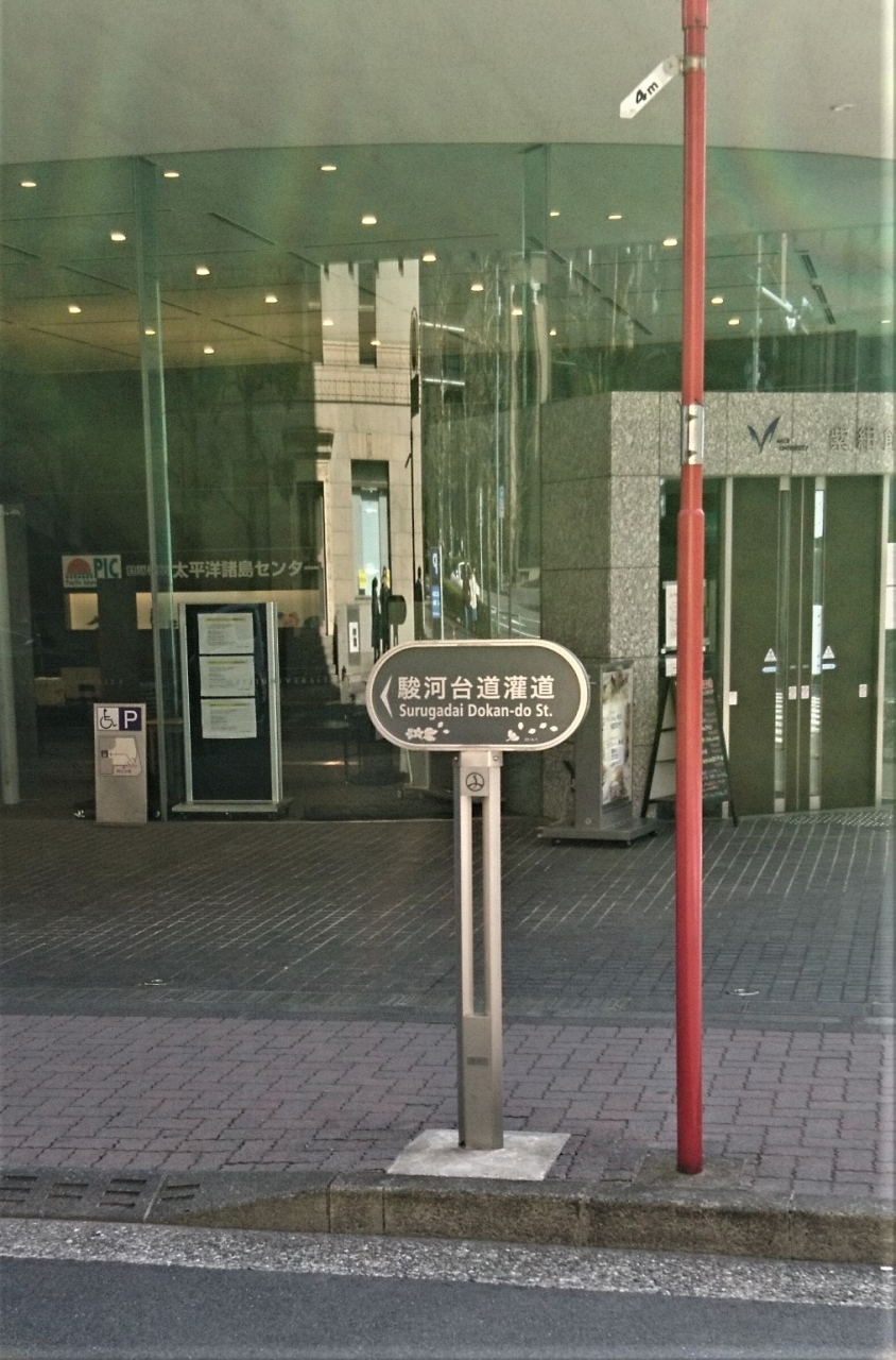 東京千代田区の神田駿河台に靖国通りと並行して走る小路。この道路標示でこの小路が由緒ある通りであることがわかった。このあたりは、公共コインパーキングがあり、都心にはめずらしく安心してクルマが停めやすいのが便利。