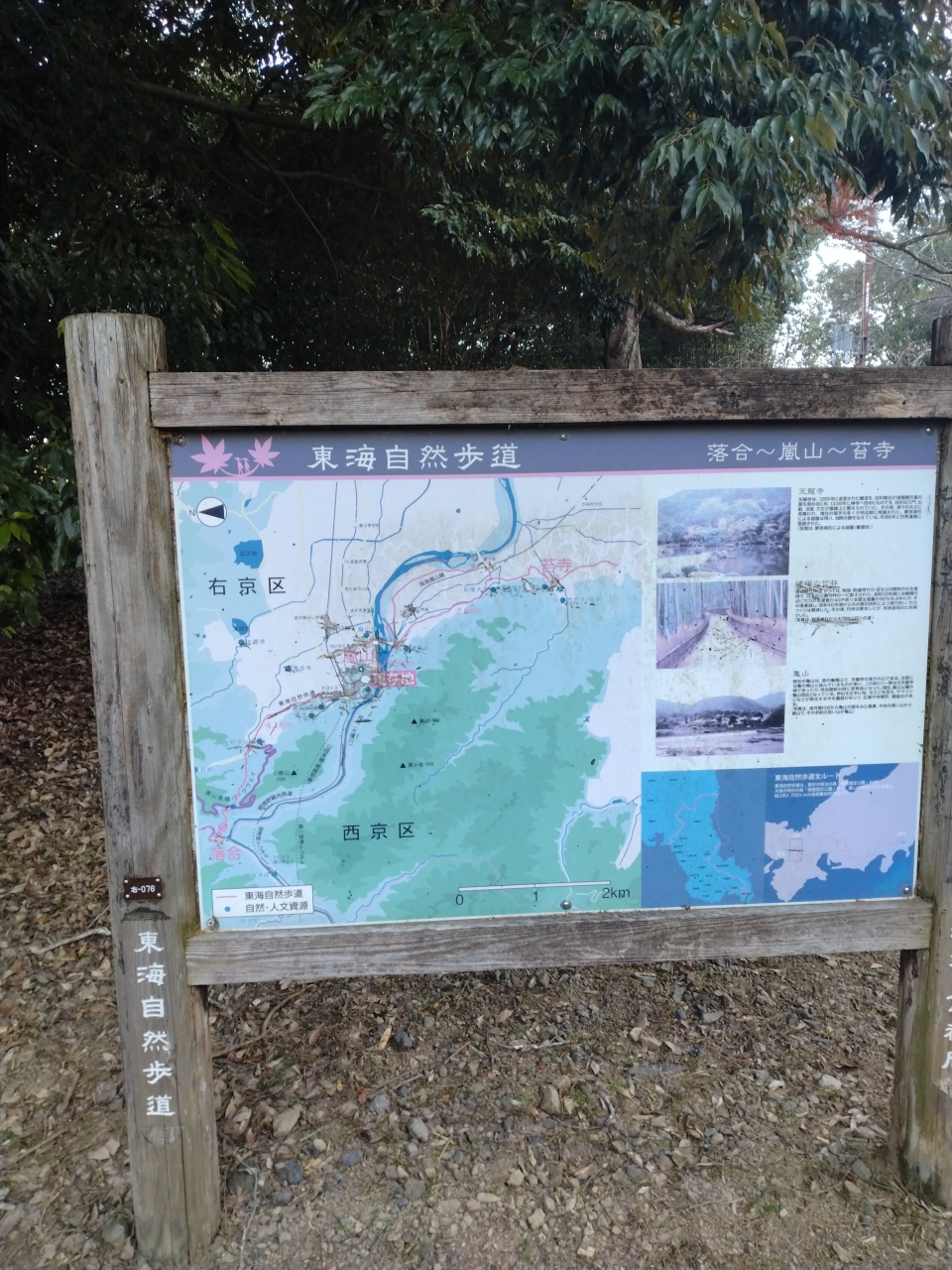 嵐山の渡月橋付近の河畔から竹林方向へ山を踏み入って進む嵐山公園内の観光歩道。鬱蒼とした山林をくぐり抜ける。途中には竹林の小径や大河内山荘庭園など嵐山亀岡地区の観光名所が続く。桂川サイドからは上り坂となっている。