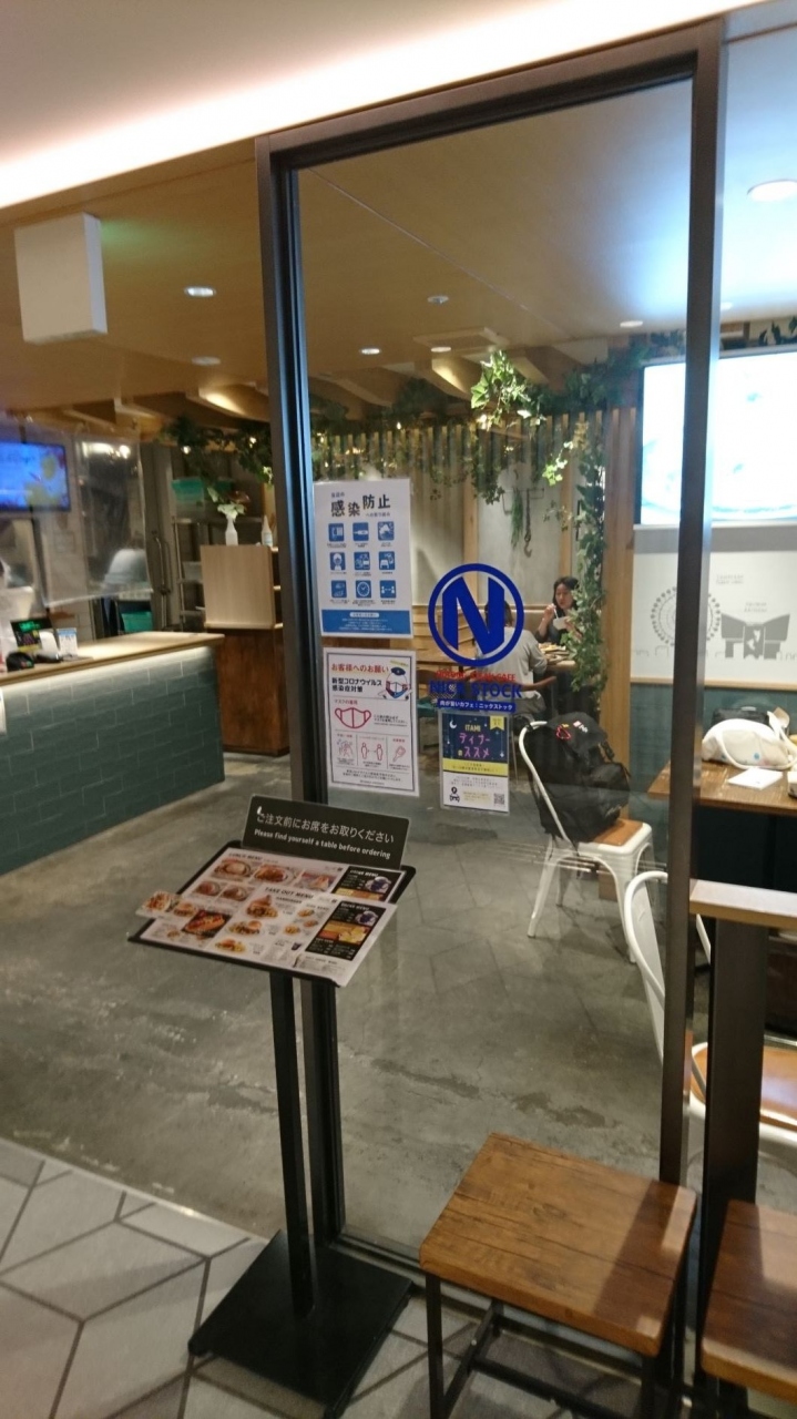 新型コロナウイルスで羽田空港内の物販や飲食施設は大幅に利用が制限されてしまっている。その中でもこの第二ターミナルのゲート内北側のANAフェスタの軽食堂は朝から営業していた。60番ゲート前の店と大体同じサービスで温かい麺類などが食べられる。