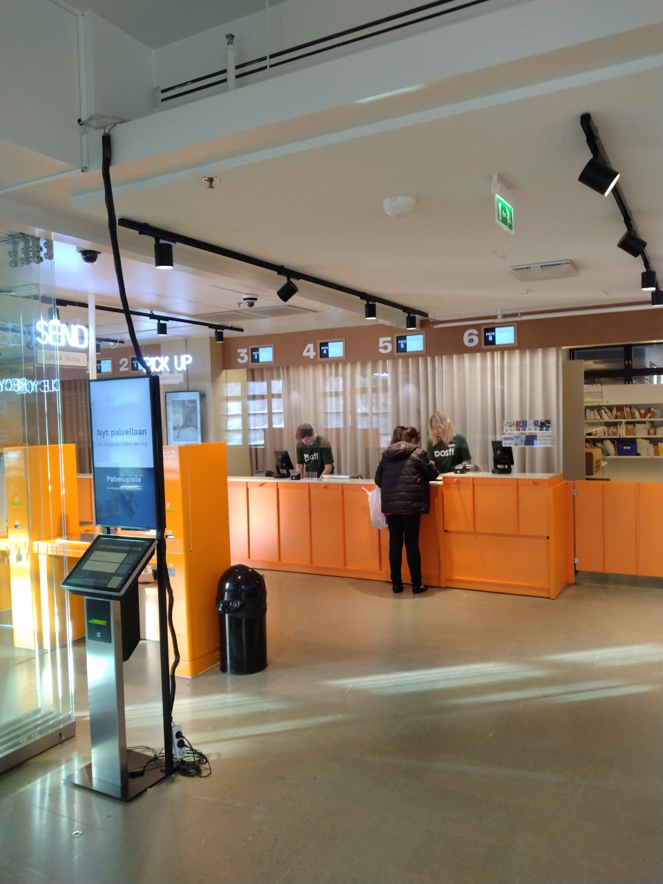 ヘルシンキ中央駅正面にある郵便局。同じビルに大型スーパーがあって買い物にも便利。ここから国際郵便を出したり、記念切手を買ったりできる。それ以外にも郵便関連のグッズ類の販売もしており、お土産を買うにも使えて便利。係員が親切。