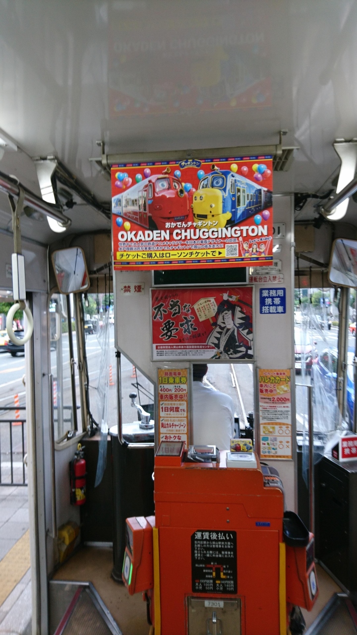 岡山市内の中心部を走る路面電車で駅前から2系統ある。市内一番の商店街である表町にはちょっと離れた電停しかないが、その他はだいたい用がたりる路線である。何しろ運賃が安いのがメリット。市内の風景が車窓から眺められて観光に便利。