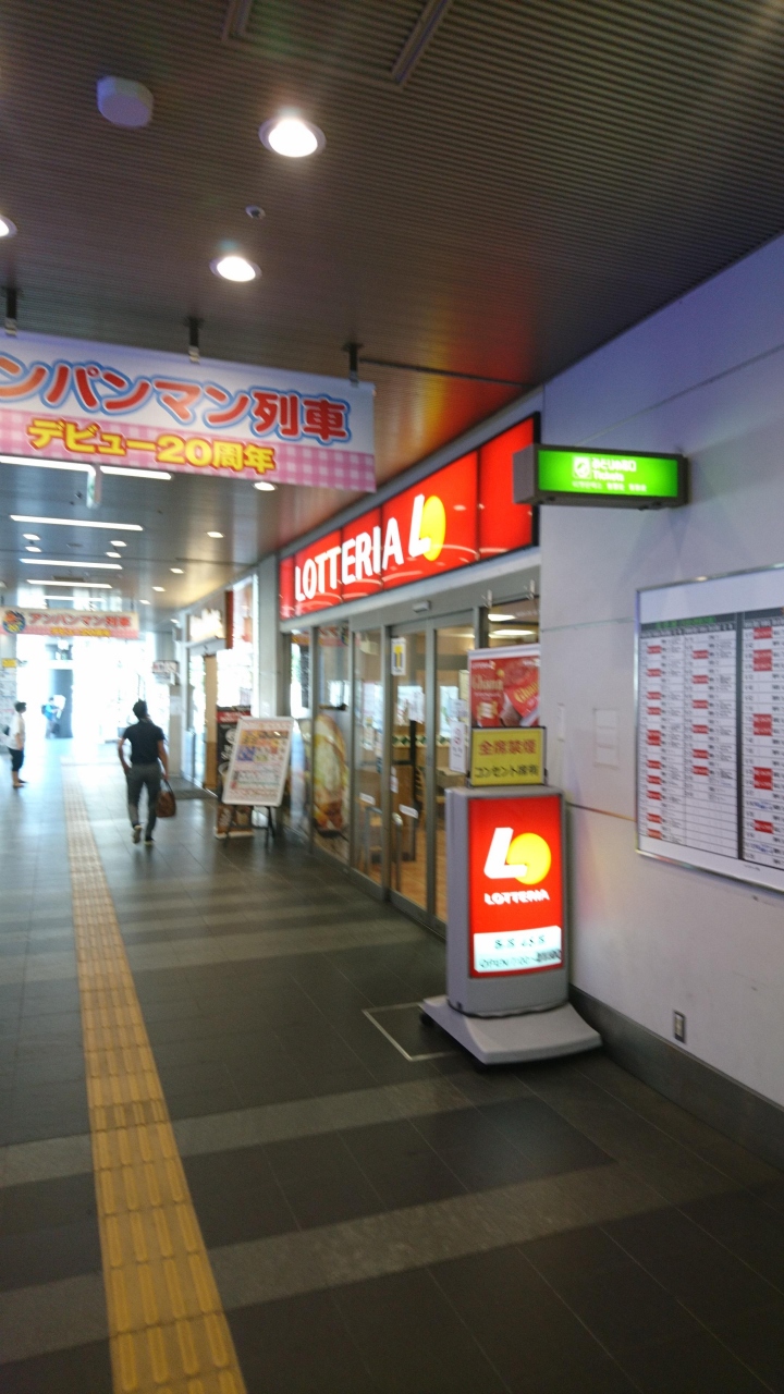 高松駅で列車の待ち合わせに利用したお馴染みのファーストフード店。ロッテリアは全国の主要駅に店舗があり便利。最近かっての喫煙コーナーが軒並み禁煙席になってのは残念なことである。Tポイントが貯まるのがよい。