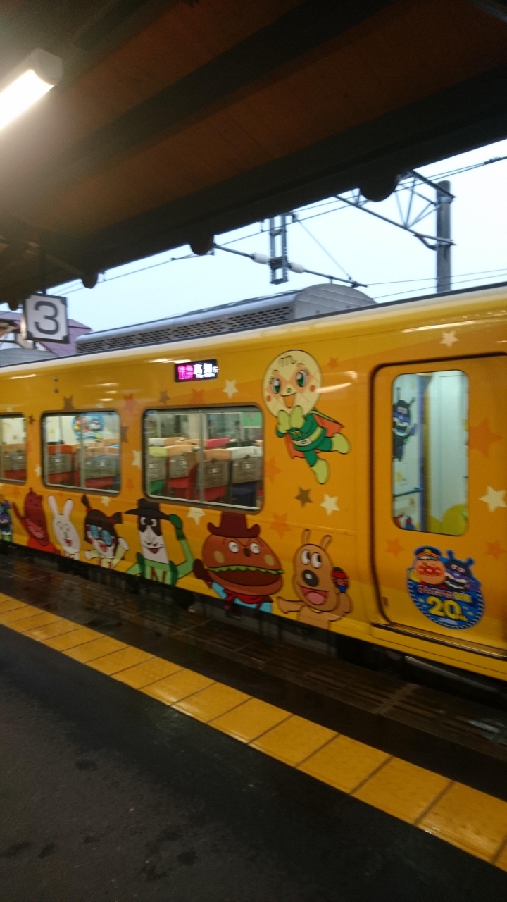 岡山から高松へ移動する際、架線事故でマリンライナーが利用できなくなりディーゼル車の特急南風号で琴平まで行き、そこから琴平電鉄で高松に行く振替輸送を利用することになった。その時の南風号がこのアンパンマン列車仕様だった。車体のみならず座席や天井もアンパンでいっぱいの車内でびっくり。