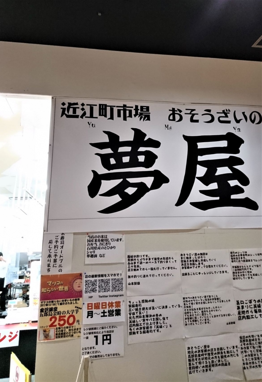 金沢は日本屈指の和菓子の宝庫。金沢駅のショッピングゾーンである金沢百番街あんと内には地元の名店の売場がずらっと並んでいて迷う。よそ者には実際食べてみないとわからない。そこで少しづつ買ってみることに。ここではお煎餅を買った。