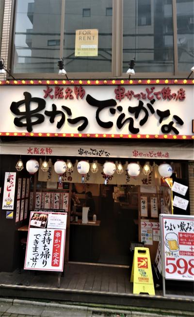 串かつでんがなは串カツ田中と同じチェーンの串カツ店である。この店のある小路商店街地蔵通りにはぴったりくる。ビールと串カツ3本がセットになった千円を切るちょい飲みセットは、夕方帰宅前の小腹を満たすにはうれしいメニューだ。