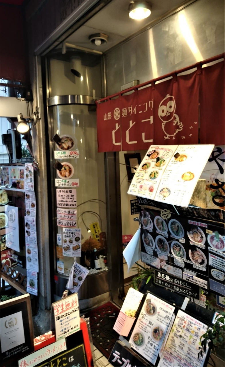 ここととは山形弁で鶏のこと。この店は店名にもある通り山形ラーメン&定食の店である。場所は神田駿河台下の交差点をお茶の水駅方向にちょっと行った雑居ビルの1階にある。ラーメンや定食以外のちょっとした山形料理もあり、いっぱいやれる店。