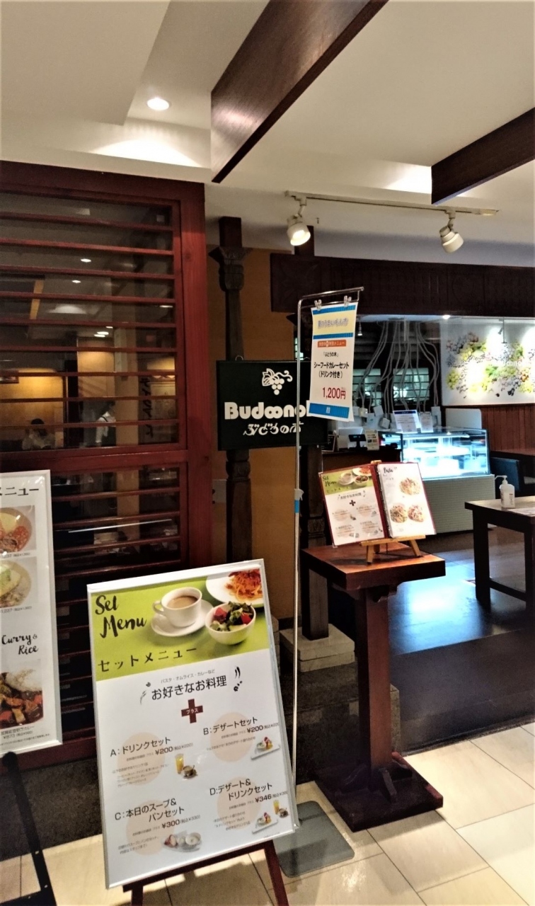 ぶどうの木は金沢にある洋菓子と洋食のチェーン店である。この店は金沢市の人気スポットのひとつ近江町市場向いのデパートめいてつエムザの地下にあるお店。人気店からしくいつも人が多い。食事以外にケーキとお茶も楽しめる。