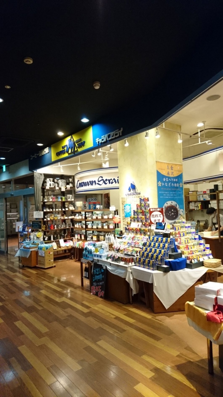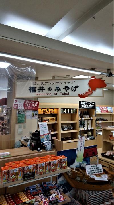 小松空港のターミナルビル2階(出発フロア)のゲート前にある福井県の名産品の直売コーナー。JAL系の空港売店ブルースカイと隣あわせで、よく見ないと区別がつかない。福井の名物でお勧めは、「鯖のへしこ」。ご飯がすすみます。