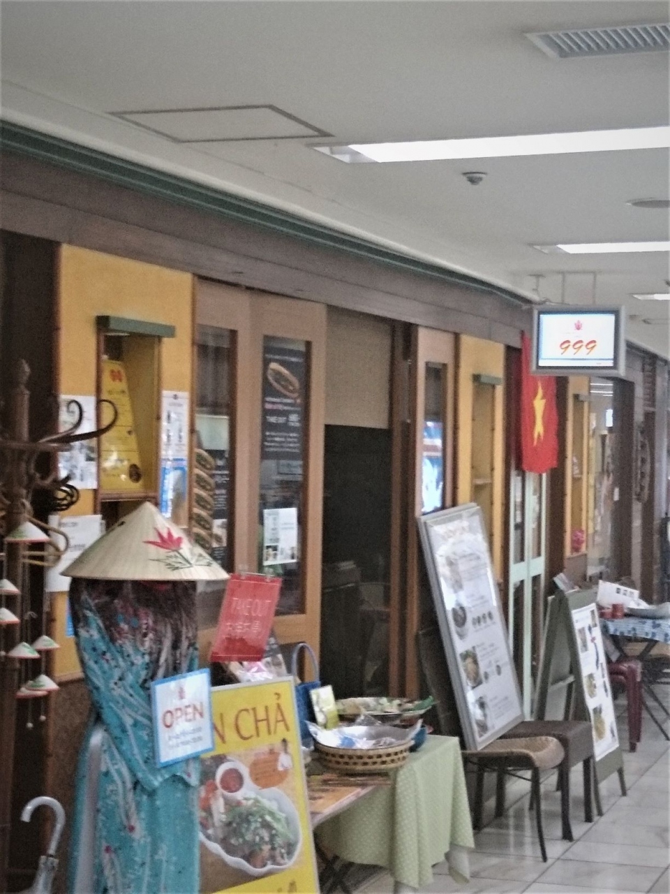 数寄屋橋交差点近くの銀座ファイブは今でも昭和の匂いが残るショッピングゾーン。その地下にある飲食店街にはアジア料理店が数軒あり、ここは店の前アオザイが飾ってあるようにベトナム料理の店。個人的は生春巻きと春雨炒めが好き。