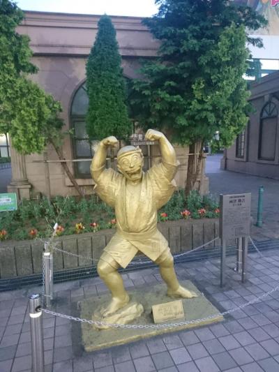亀有の駅前周辺には漫画こちら亀有公園前派出所(通称こち亀)関連のモニュメントがいたるところにあり、両さん像もひとつではない。この写真にある像は南口にある金塗の銅像。亀有には人気にあやかったこち亀記念のお菓子などもある。