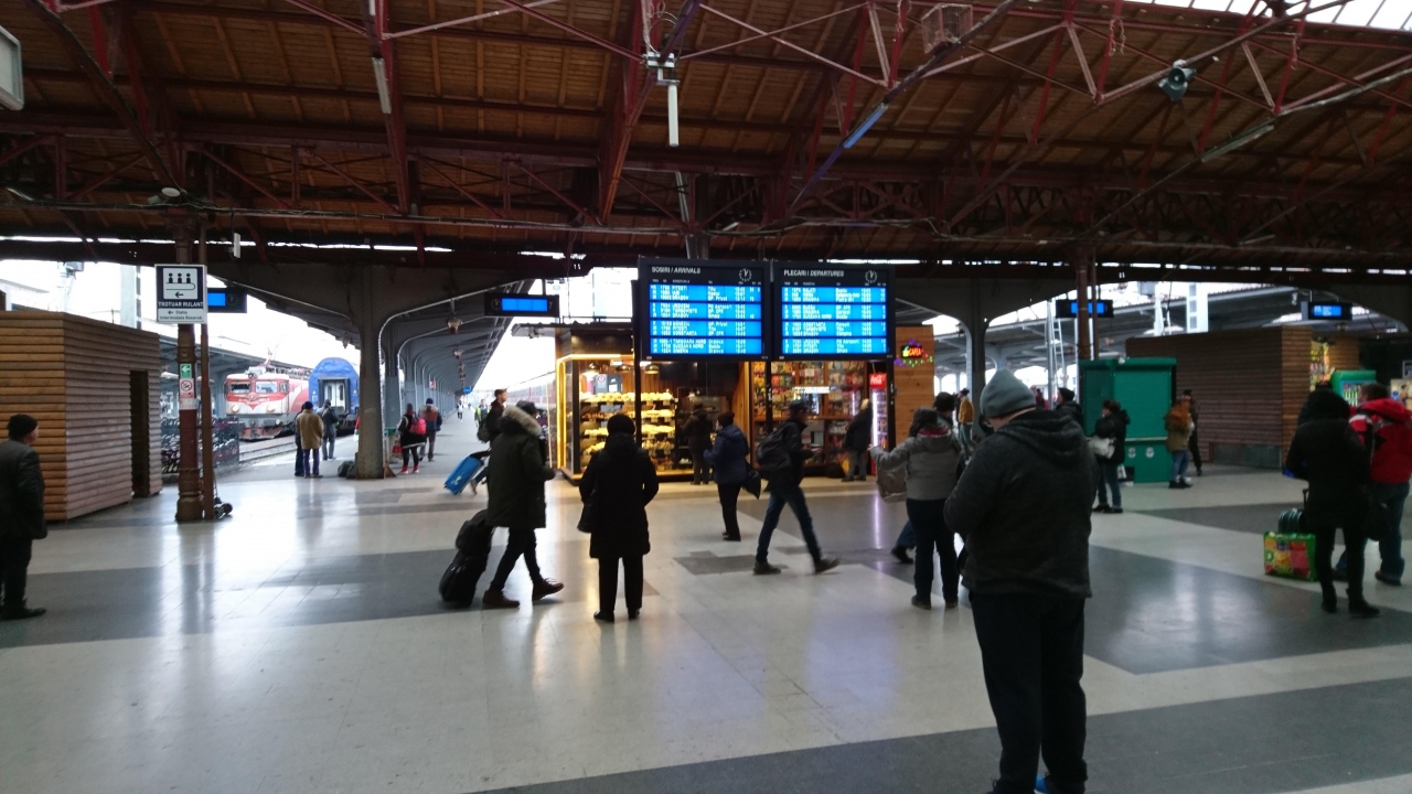 ブダペストから寝台列車で着いたブカレストの国際列車も発着する中心駅。構内には各種の飲食店もあり、施設はかなり整っている大型ターミナル駅。市内各所へはここから地下鉄に乗り換えて向かうことになる。掲示板類は見やすい。