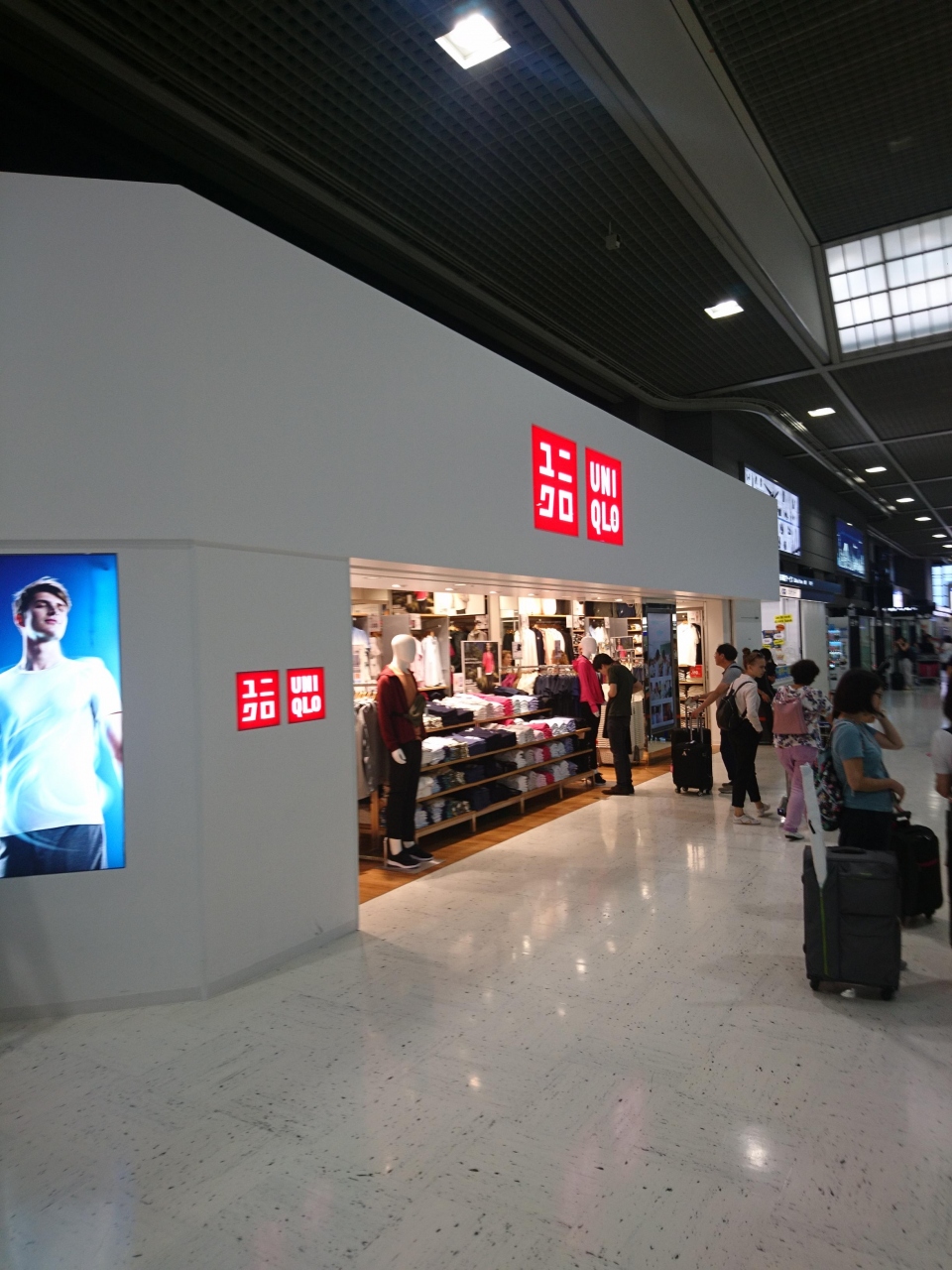 成田空港第二ターミナルビルの国際線出発階にあるユニクロの店。国内の大きな空港内に最近必ずあるのがこのユニクロ。特に出発前に行先の国やエリアの気候に合わせて、追加の衣類を出発直前に買えて便利だ。お店も大きくないのでかえって選びやすい。