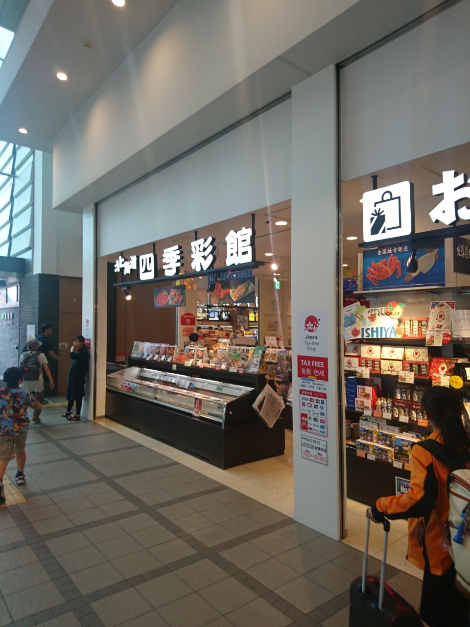 函館駅にある大規模なお土産さん。JR北海道の直営店で交通系ICカードも支払いに使える。土産物の種類が多い。社内販売で買うことができなくなった長万部駅のかに飯を探したが、時間もなく焦って探したせいか見つけることができなかった。