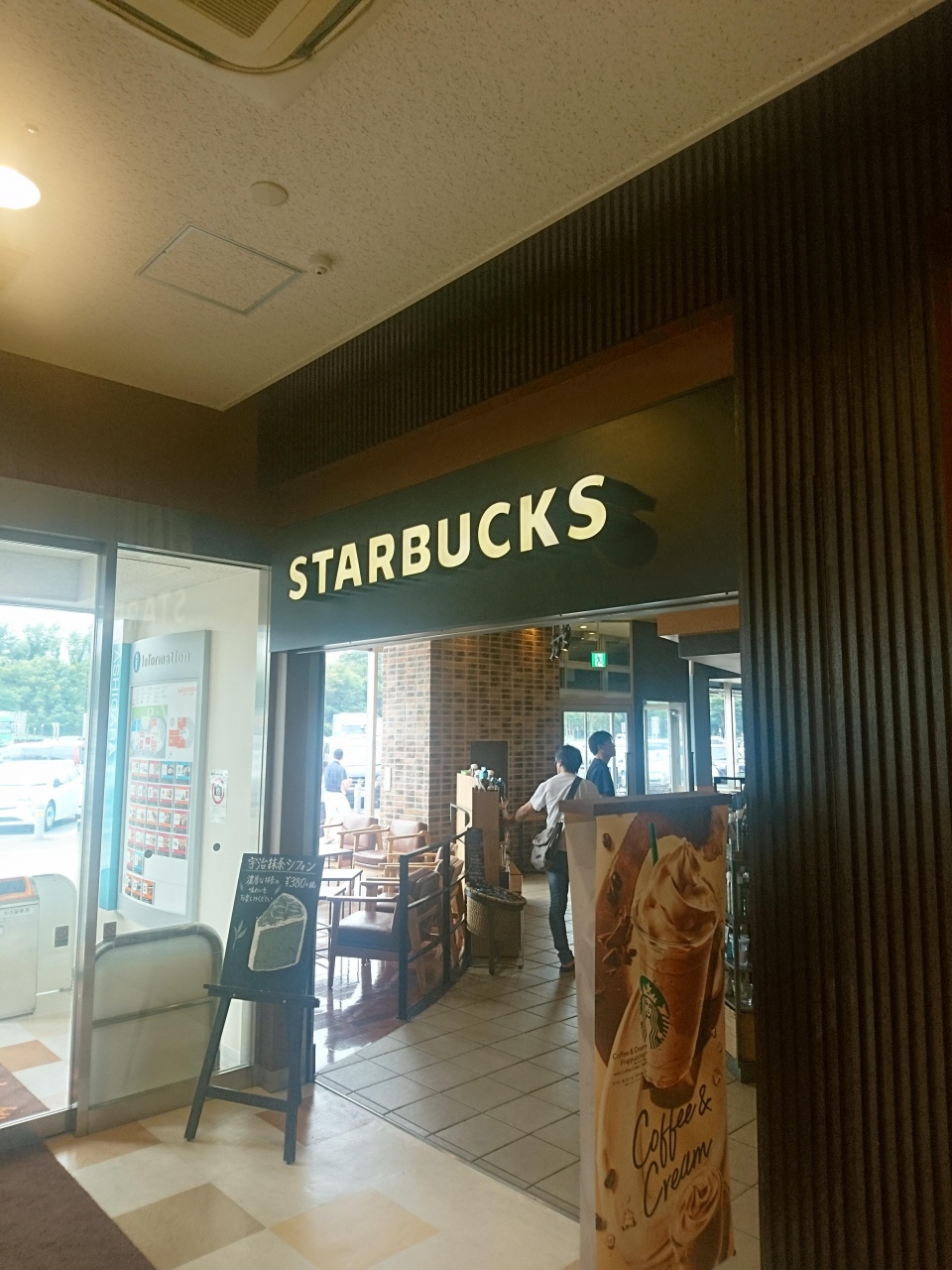 高速道路のサービスエリアにはスターバックスコーヒーは定番的な存在になっている。ここ東名高速道路下り線の足柄サービスエリアにも、出入口の一番目立つ場所にある。ここで買って喫煙所でカフェを飲みながらタバコが吸うことがいつものパターン。