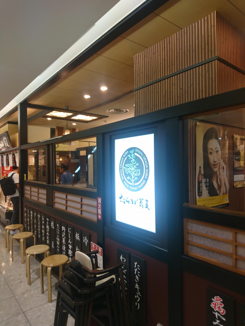 東京荒川区の中心町屋駅の駅ビルともいうべき町屋サンポップの地下飲食店街にあるそば屋。並みのそば屋以上の酒のつまみ類が充実していて、夜は居酒屋状態である。このビルの営業終了の夜11時近くまで営業しているのも、そうした使い方になる要素かもしれない。