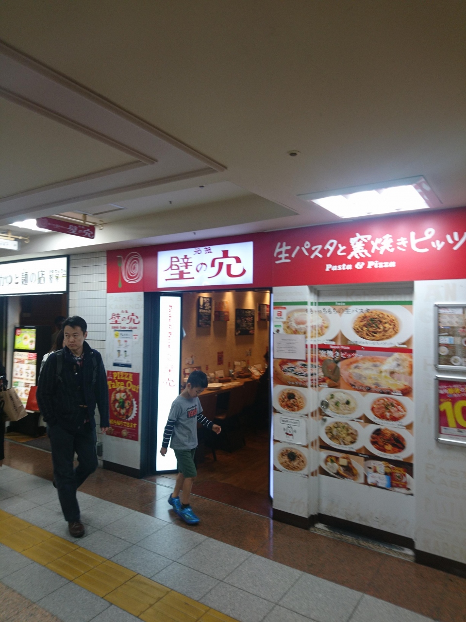 店名に元祖とあるように、壁の穴は今ほどパスタが一般的ではなかった頃、パスタというよりスパゲッティー専門店として破格に人気のあったちょっと変わった店名の店だった。ここはその流れをくむお店で、新宿京王線の連絡地下街にある。たらこなどの和風のメニューにオリジナリティーがある。