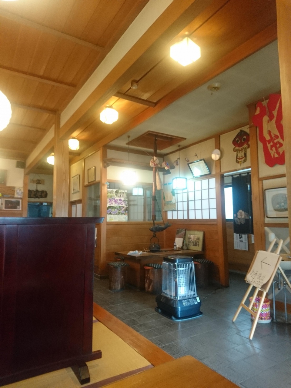 那須高原のバスの終点である那須湯本にあるそば屋。このあたりは食事処が観光地にしては少なく、シーズンオフの平日はさらに絞られるので、貴重な存在。場所は観光案内所前の駐車場横にある。お店の入口に値段やメニューの表示がないのは不親切。