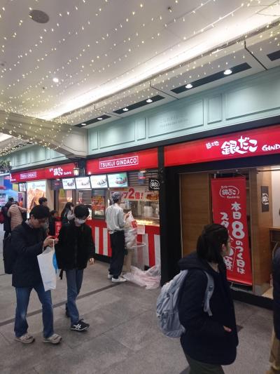 人通りの多い連絡通路のたこ焼きスタンド