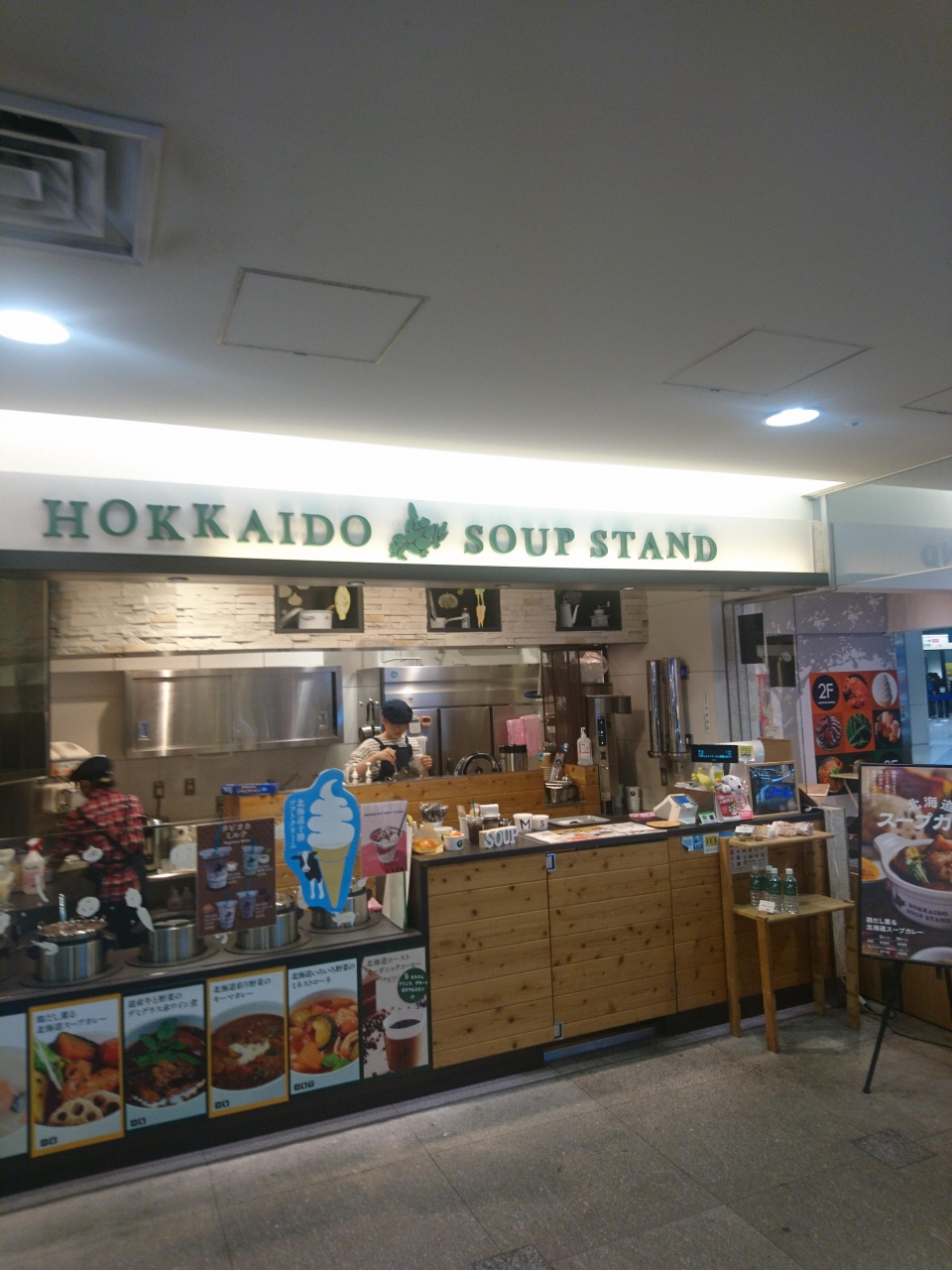 首都圏にはスープスタンドのチェーンであるトーキョースープストックが各所にあるが、北海道にもスープスタンドがあった。ここは新千歳空港内のロビー階にあり、ちょっとめずらしいのは地元の名産スープカレーもあること。