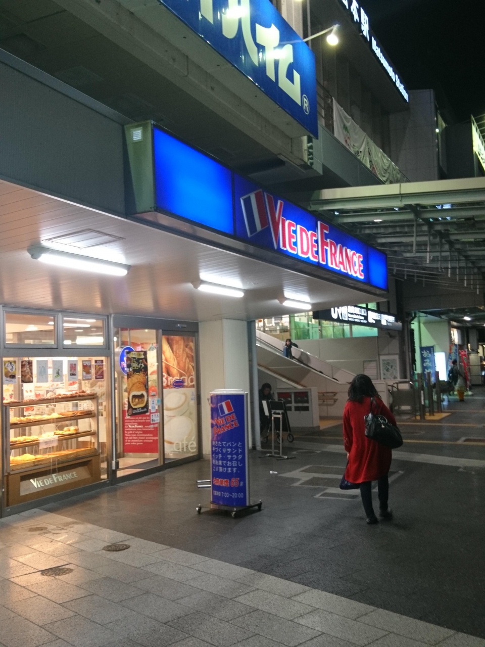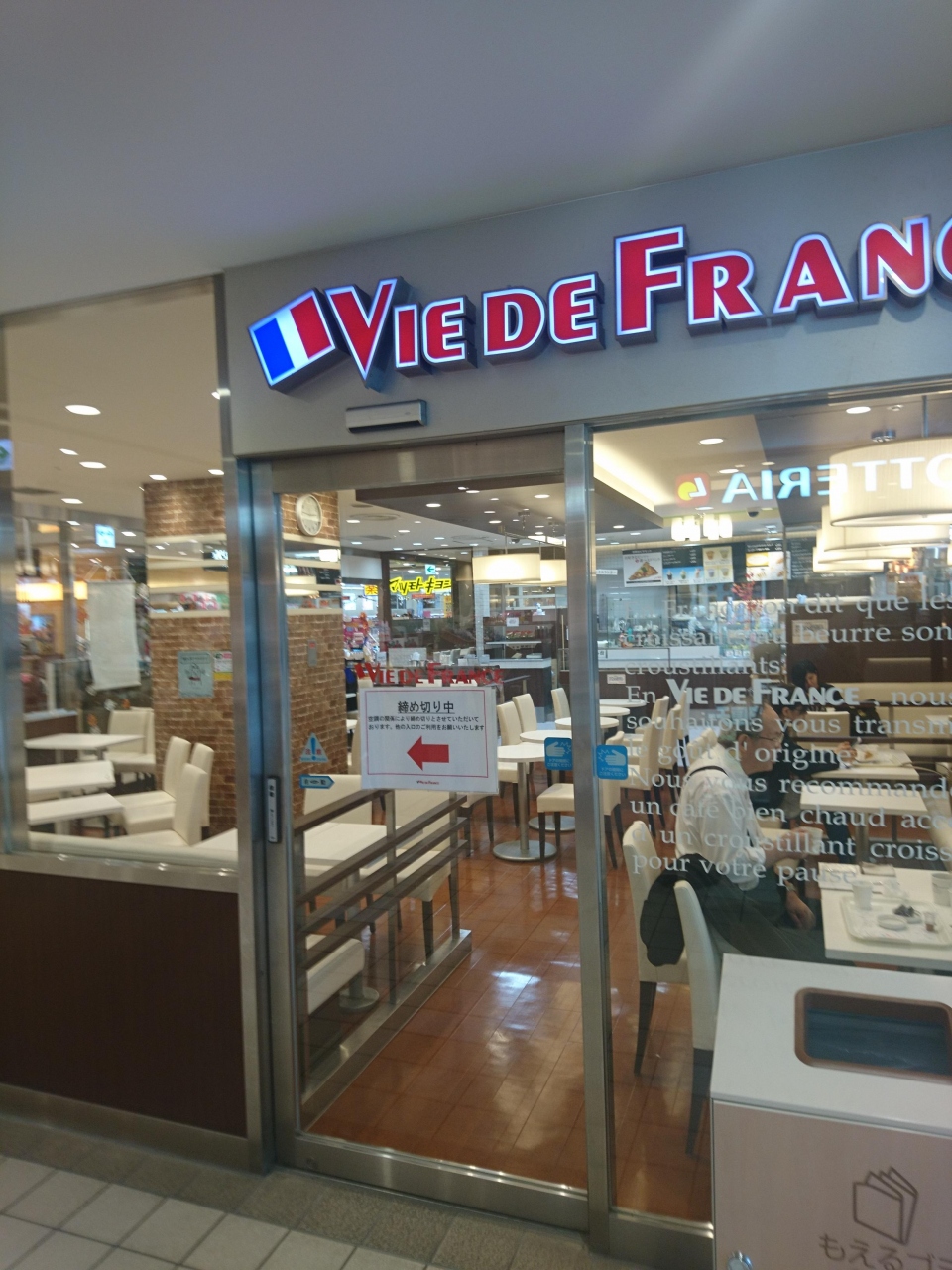 秋田駅の駅ビル商店街トピコの1階にある全国チェーンのベイカリーショップ。ヴィドフランスはどこも、このお店の様に駅ビルなど便利な立地にあり、旅行者には身近に感じる飲食施設である。ほとんどのお店がイートインコーナーが完備している。
