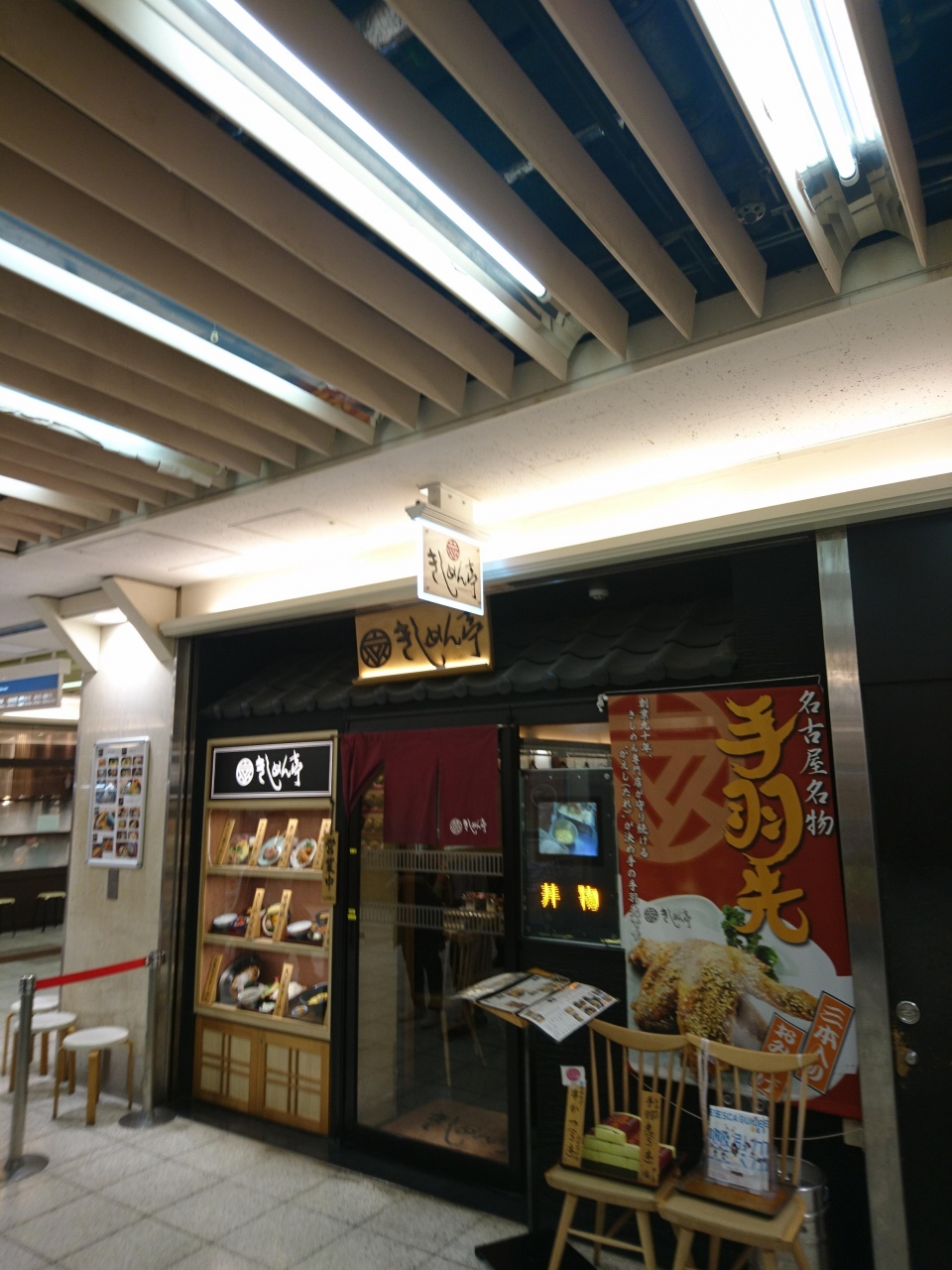 JR名古屋駅の新幹線口向かいの地下街エスタには飲食店街もあり、名古屋名物料理が一通り揃っている。ここは名古屋名物のきしめんの店。店名もずばりきしめん亭。エスタのどの店も場所がよいので混んでいるのが問題ではある。