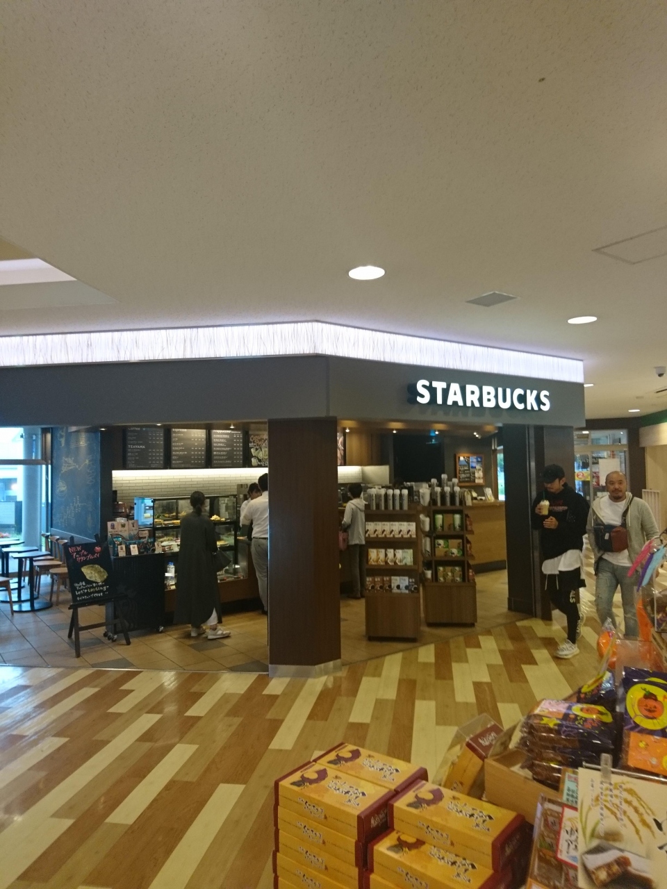 名古屋から東京まで昼行の高速バスで移動した際、トイレ休憩で止まったサービスエリアがこのEXPASA足柄がある場所だった。このスターバックスコーヒーは、その建物のなかにあるお店。最近改装なった高速道路のサービスエリアにはどこにでもあるタイプのスタバ。