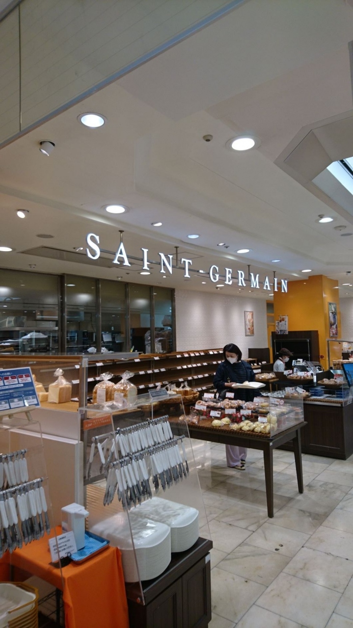 サンジェルマンはチェーンベイカリーでこの店は柏駅西口にあるデパート柏高島屋の1階食品売り場にある店。豊富な種類のパン類やロールケーキなどの洋菓子が手頃な値段で買い求めることができる、セルフサービスの店舗。