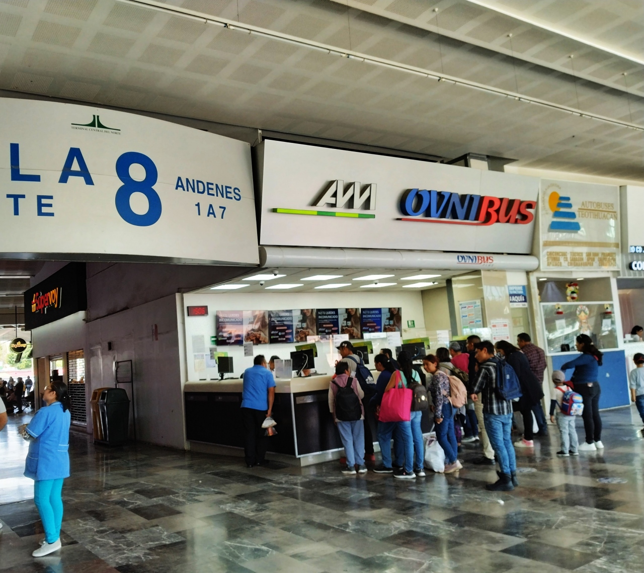 メキシコシティーの近郊や長距離路線の発着する大型のバスターミナル。メキシコシティー郊外の世界遺産「死者の道」へ行くバスを利用する際に利用した。全体的に混雑しており、施設もトイレが有料などあまり近代的とはいえない。