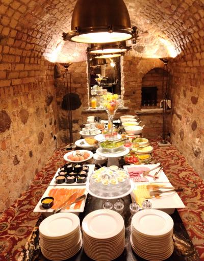 リトアニアの首都ビリニュスの旧市街地区にある伝統あるホテル。その昔はホテルの向かいにある大学の宿泊所だったとのこと。50室程度の小さなホテルだが、スパも備えた高級シティーリゾートホテル。豪華な朝食ビュッフェが売りで、室料に含まれる。朝シャンペンも置いてあった。スタッフもすごくフレンドリーで色々な各種依頼も丁寧に応対してくれる。客室内にミニバーがあるのも高級ホテルならでは。ただ空調設備は古い集中型のスチームなのので、暖房が弱く夜間は少し寒かった。