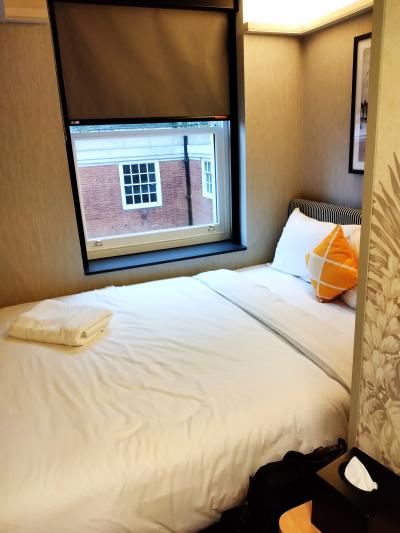 ユーストン駅から寝台列車を利用するのに便利な立地なので利用した。海外では週末土曜日の室料は極端に高くなるので旅費を節約したく、このバジェットホテルを予約したが、シェラトンブランドとは全く無縁の超狭い客室でドン引きした。施設は新しく清潔だが、とにかく寝るだけのスペースでまるで列車の個室寝台みたいだった。列車旅行の予行演習をした考えて直して楽しむことで気分転換。朝食は一人15ポンド(約3千円)で追加したが、内容はまずまず。