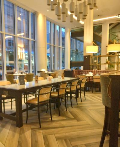 泊まったホテル(クラウンプラザホテルヒースローT4)の飲食施設食事メニューが貧弱なので、同じ連絡橋でつながっているこのホテルのレストランに食事に行った。しっかりした本格的なステーキが食べられて満足。残念なのはレストランや売店で支払った分にはヒルトンオーナーズのポイント付与がないこと。確かに空港(ヒースローT4)に連絡橋でつながっているが、距離が半端なく長い。