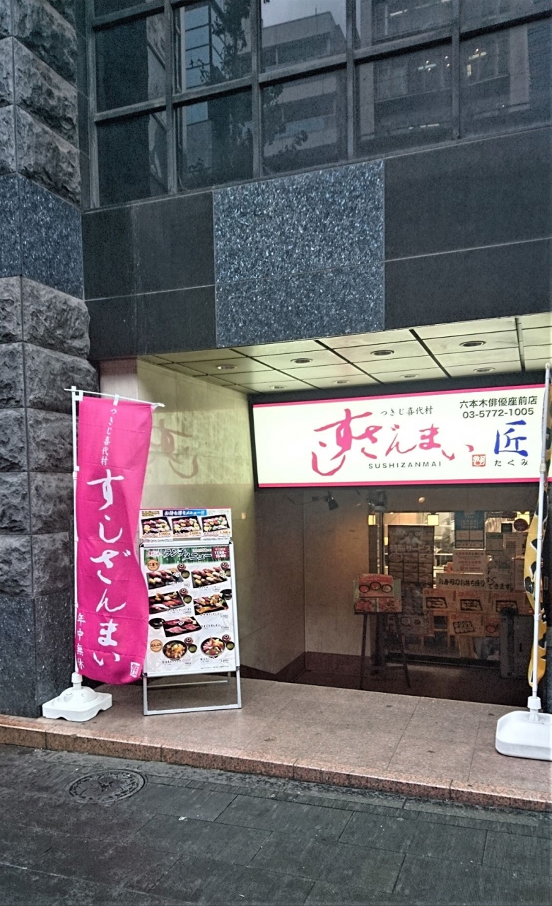 六本木交差点近くの六本木通りに面して俳優座の真向かいのビルの1階にあるすしざんまいの店。24時間営業とうたっているが、コロナでアルコール販売時間帯が制限されるので、そのメリットはしばらくお預けだろう。ランチも付近のサラリーマンがリモートワークになって客がまばらだった。