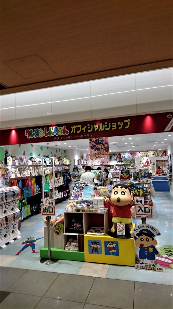 東京駅の商店街のひとつ東京一番街の地下にある東京キャラクターストリートになかにあるクレヨンしんちゃんの公式ショップ。このまわりは名前の通りキャラクターグッズショップだらけである。コロナで観光客が激減しているので最近は混んでいない。